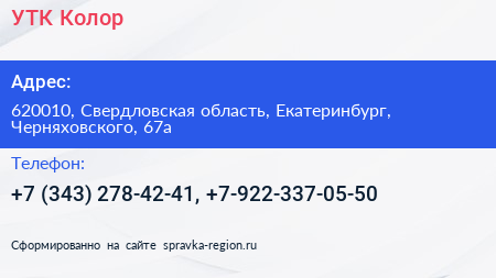 УТК-Колор по адресу 620010, Свердловская область, Екатеринбург, Черняховского, 67а в дальнейшем Организация, размещена в следующих категориях: