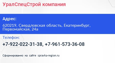 УралСпецСтрой, компания по адресу 620219, Свердловская область, Екатеринбург, Первомайская, 24а в дальнейшем Организация, размещена в следующих категориях:
