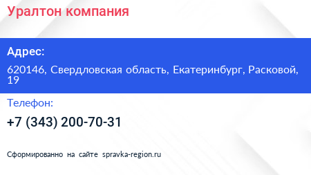 Уралтон, компания по адресу 620146, Свердловская область, Екатеринбург, Расковой, 19 в дальнейшем Организация, размещена в следующих категориях: