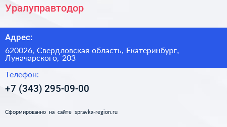 Уралуправтодор по адресу 620026, Свердловская область, Екатеринбург, Луначарского, 203 в дальнейшем Организация, размещена в следующих категориях: