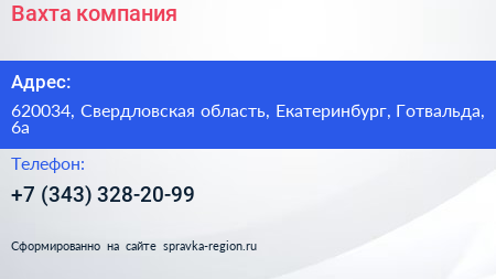 Вахта, компания по адресу 620034, Свердловская область, Екатеринбург, Готвальда, 6а в дальнейшем Организация, размещена в следующих категориях: