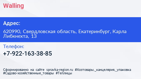 Walling по адресу 620990, Свердловская область, Екатеринбург, Карла Либкнехта, 13 в дальнейшем Организация, размещена в следующих категориях: