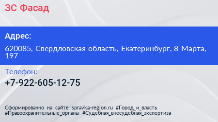 ЗС-Фасад по адресу 620085, Свердловская область, Екатеринбург, 8 Марта, 197 в дальнейшем Организация, размещена в следующих категориях: