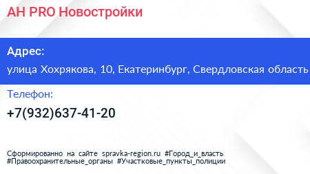 АН PRO – Новостройки по адресу улица Хохрякова, 10, Екатеринбург, Свердловская область в дальнейшем Организация, размещена в следующих категориях: