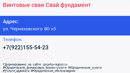 Винтовые сваи Свай-фундамент по адресу ул. Черняховского 80 к5 в дальнейшем Организация, размещена в следующих категориях: