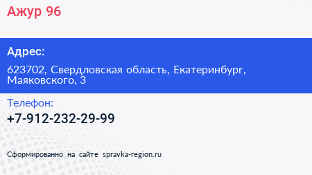 Ажур 96 по адресу 623702, Свердловская область, Екатеринбург, Маяковского, 3 в дальнейшем Организация, размещена в следующих категориях: