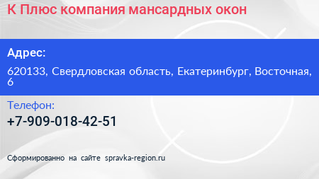 К-Плюс, компания мансардных окон по адресу 620133, Свердловская область, Екатеринбург, Восточная, 6 в дальнейшем Организация, размещена в следующих категориях: