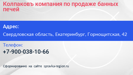 Колпаковъ, компания по продаже банных печей по адресу Свердловская область, Екатеринбург, Горнощитская, 42 в дальнейшем Организация, размещена в следующих категориях: