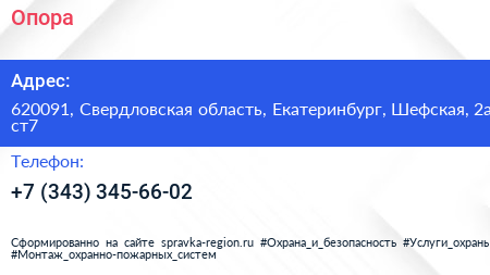 Для связи с организацией воспользуйтесь номером телефона: +7 (343) 345-66-02. Пн: c 08:00-17:00, Вт: c 08:00-17:00, Ср: c 08:00-17:00, Чт: c 08:00-17:00, Пт: c 08:00-17:00, Сб: выходной, Вс: выходной, вы можете обратиться в эту организацию.