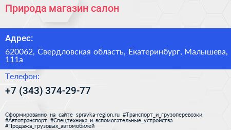 Природа, магазин-салон по адресу 620062, Свердловская область, Екатеринбург, Малышева, 111а в дальнейшем Организация, размещена в следующих категориях: