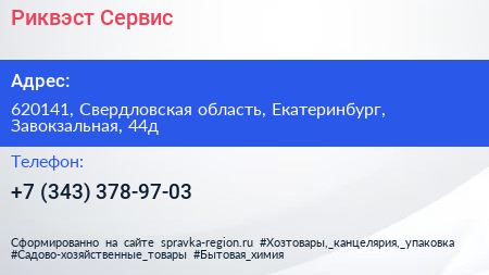 Риквэст-Сервис по адресу 620141, Свердловская область, Екатеринбург, Завокзальная, 44д в дальнейшем Организация, размещена в следующих категориях: