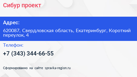 Сибур-проект по адресу 620087, Свердловская область, Екатеринбург, Короткий переулок, 4 в дальнейшем Организация, размещена в следующих категориях: