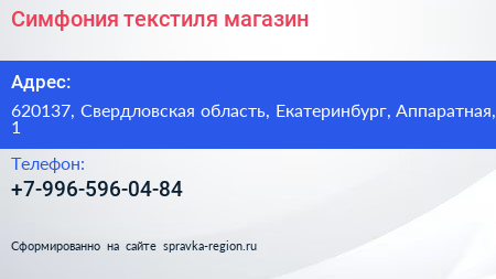 Симфония текстиля, магазин по адресу 620137, Свердловская область, Екатеринбург, Аппаратная, 1 в дальнейшем Организация, размещена в следующих категориях: