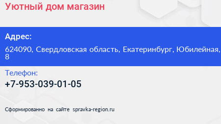 Уютный дом, магазин по адресу 624090, Свердловская область, Екатеринбург, Юбилейная, 8 в дальнейшем Организация, размещена в следующих категориях:
