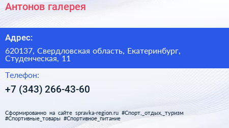 Антонов, галерея по адресу 620137, Свердловская область, Екатеринбург, Студенческая, 11 в дальнейшем Организация, размещена в следующих категориях: