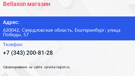 Bellason, магазин по адресу 620042, Свердловская область, Екатеринбург, улица Победы, 57 в дальнейшем Организация, размещена в следующих категориях: