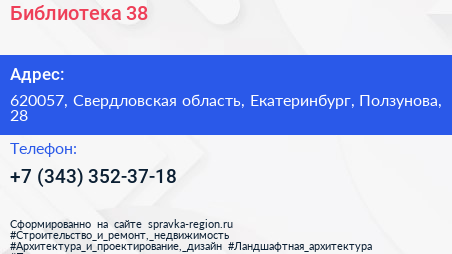 Библиотека №38 по адресу 620057, Свердловская область, Екатеринбург, Ползунова, 28 в дальнейшем Организация, размещена в следующих категориях: