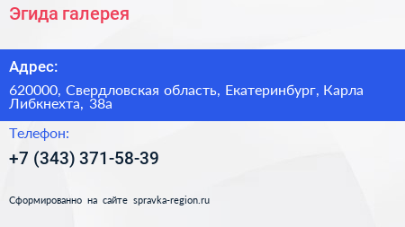 Эгида, галерея по адресу 620000, Свердловская область, Екатеринбург, Карла Либкнехта, 38а в дальнейшем Организация, размещена в следующих категориях: