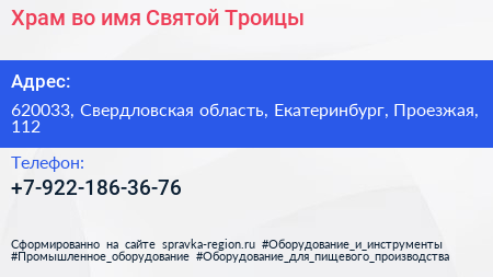 Храм во имя Святой Троицы по адресу 620033, Свердловская область, Екатеринбург, Проезжая, 112 в дальнейшем Организация, размещена в следующих категориях: