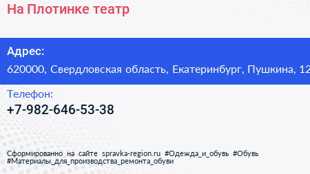 На Плотинке, театр по адресу 620000, Свердловская область, Екатеринбург, Пушкина, 12 в дальнейшем Организация, размещена в следующих категориях: