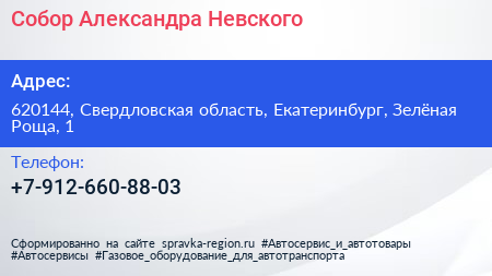 Собор Александра Невского по адресу 620144, Свердловская область, Екатеринбург, Зелёная Роща, 1 в дальнейшем Организация, размещена в следующих категориях: