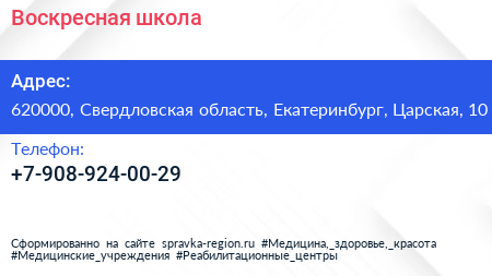 Воскресная школа по адресу 620000, Свердловская область, Екатеринбург, Царская, 10 в дальнейшем Организация, размещена в следующих категориях:
