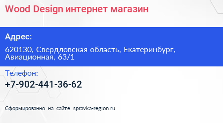 Wood Design, интернет-магазин по адресу 620130, Свердловская область, Екатеринбург, Авиационная, 63/1 в дальнейшем Организация, размещена в следующих категориях: