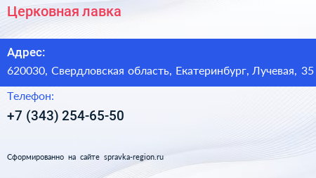 Церковная лавка по адресу 620030, Свердловская область, Екатеринбург, Лучевая, 35 в дальнейшем Организация, размещена в следующих категориях: