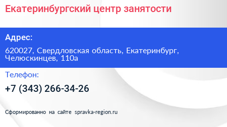 Екатеринбургский центр занятости по адресу 620027, Свердловская область, Екатеринбург, Челюскинцев, 110а в дальнейшем Организация, размещена в следующих категориях: