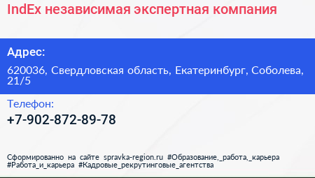 IndEx, независимая экспертная компания по адресу 620036, Свердловская область, Екатеринбург, Соболева, 21/5 в дальнейшем Организация, размещена в следующих категориях:
