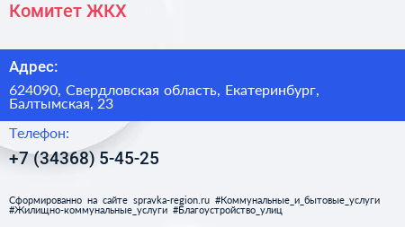 Комитет ЖКХ по адресу 624090, Свердловская область, Екатеринбург, Балтымская, 23 в дальнейшем Организация, размещена в следующих категориях: