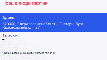 Новые люди, партия по адресу 620000, Свердловская область, Екатеринбург, Красноармейская, 37 в дальнейшем Организация, размещена в следующих категориях: