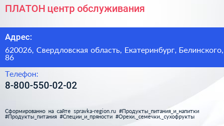 ПЛАТОН, центр обслуживания по адресу 620026, Свердловская область, Екатеринбург, Белинского, 86 в дальнейшем Организация, размещена в следующих категориях: