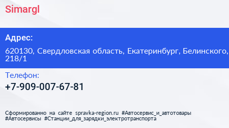 Simargl по адресу 620130, Свердловская область, Екатеринбург, Белинского, 218/1 в дальнейшем Организация, размещена в следующих категориях: