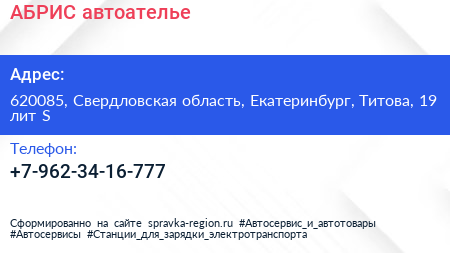 АБРИС, автоателье по адресу 620085, Свердловская область, Екатеринбург, Титова, 19 лит S в дальнейшем Организация, размещена в следующих категориях: