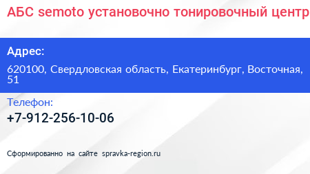 АБС semoto, установочно-тонировочный центр по адресу 620100, Свердловская область, Екатеринбург, Восточная, 51 в дальнейшем Организация, размещена в следующих категориях: