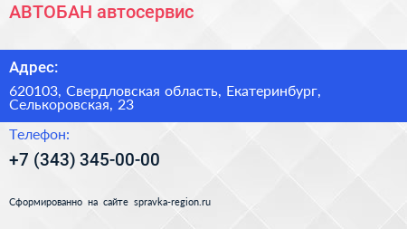 АВТОБАН, автосервис по адресу 620103, Свердловская область, Екатеринбург, Селькоровская, 23 в дальнейшем Организация, размещена в следующих категориях: