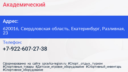 Академический по адресу 620016, Свердловская область, Екатеринбург, Разливная, 23 в дальнейшем Организация, размещена в следующих категориях: