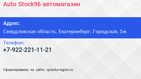 Auto-Stock96, автомагазин по адресу Свердловская область, Екатеринбург, Городская, 1ж в дальнейшем Организация, размещена в следующих категориях: