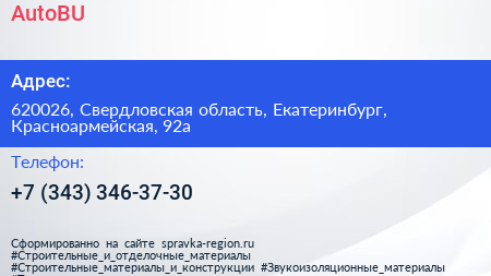 AutoBU по адресу 620026, Свердловская область, Екатеринбург, Красноармейская, 92а в дальнейшем Организация, размещена в следующих категориях: