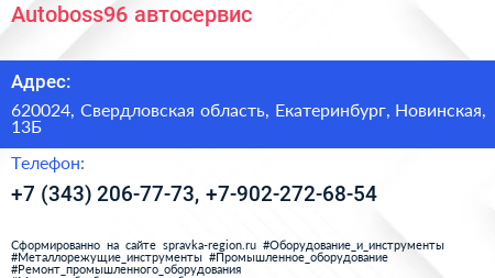 Autoboss96, автосервис по адресу 620024, Свердловская область, Екатеринбург, Новинская, 13Б в дальнейшем Организация, размещена в следующих категориях: