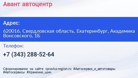 Авант, автоцентр по адресу 620016, Свердловская область, Екатеринбург, Академика Вонсовского, 1Б в дальнейшем Организация, размещена в следующих категориях: