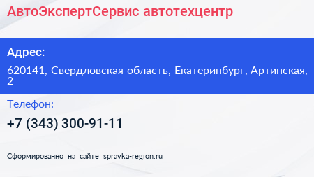 АвтоЭкспертСервис, автотехцентр по адресу 620141, Свердловская область, Екатеринбург, Артинская, 2 в дальнейшем Организация, размещена в следующих категориях: