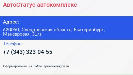 АвтоСтатус, автокомплекс по адресу 620050, Свердловская область, Екатеринбург, Маневровая, 31/а в дальнейшем Организация, размещена в следующих категориях: