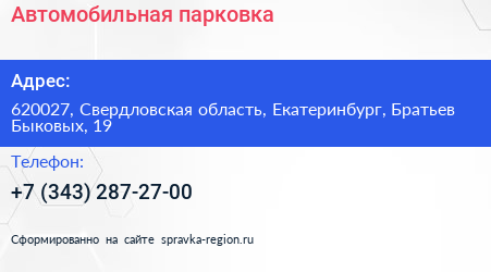 Автомобильная парковка по адресу 620027, Свердловская область, Екатеринбург, Братьев Быковых, 19 в дальнейшем Организация, размещена в следующих категориях: