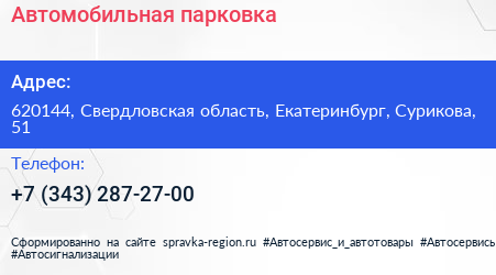 Автомобильная парковка по адресу 620144, Свердловская область, Екатеринбург, Сурикова, 51 в дальнейшем Организация, размещена в следующих категориях: