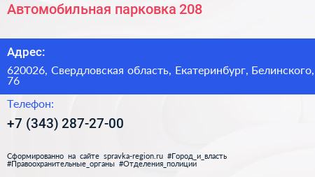 Автомобильная парковка №208 по адресу 620026, Свердловская область, Екатеринбург, Белинского, 76 в дальнейшем Организация, размещена в следующих категориях: