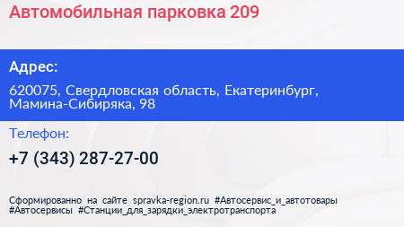 Автомобильная парковка №209 по адресу 620075, Свердловская область, Екатеринбург, Мамина-Сибиряка, 98 в дальнейшем Организация, размещена в следующих категориях: