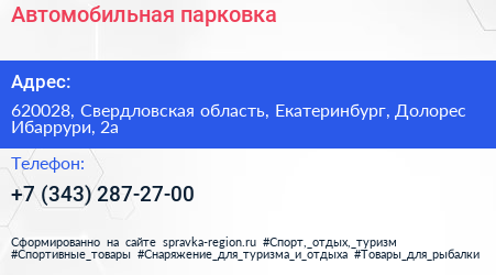 Автомобильная парковка по адресу 620028, Свердловская область, Екатеринбург, Долорес Ибаррури, 2а в дальнейшем Организация, размещена в следующих категориях: