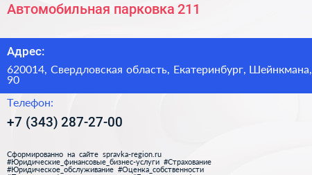 Автомобильная парковка №211 по адресу 620014, Свердловская область, Екатеринбург, Шейнкмана, 90 в дальнейшем Организация, размещена в следующих категориях: